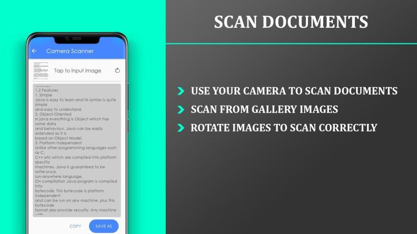 Camera Scanner - Image Scanner is a powerful document scanner it scans through phone's camera and extracts the text from images also it scans from saved images in gallery, Camera Scanner is an easy to use and useful image to text scanner. Camera Scanner - Image Scanner uses OCR technology to scan images and documents, it's a simple image to text scanner.