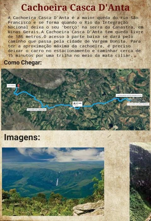 Ini berisi tempat terbaik untuk praktek ekowisata di Serra da Canastra National Park. Air Terjun terbaik, hotel restoran dan toko-toko lokal.