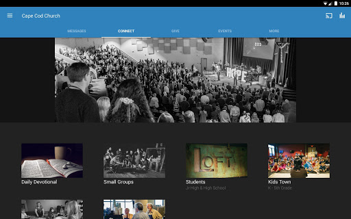 Aplikasi Cape Cod Church dibuat dengan platform aplikasi subsplash.