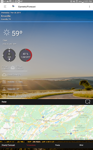 Update to the mapping background in the radar tile and page to give it a new modern look. Boundaries, roads, cities display on top of radar data to make it easier to view your location on the map.