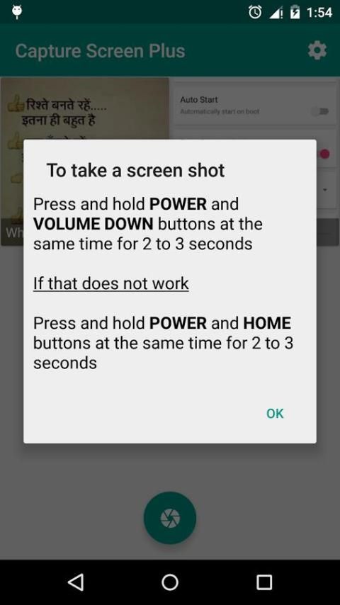 Catatan: Jika perangkat menjalankan versi lebih rendah dari Android ICS (yaitu versi <4.0) dan perangkat non berakar, aplikasi ini mungkin tidak dapat mengambil screen shot atau menangkap layar.