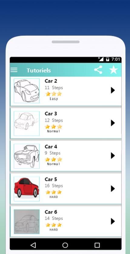 cara menggambar mobil adalah sebuah aplikasi, Anda akan belajar cara menggambar mobil dengan cepat dan langkah demi langkah. Aplikasi ini menawarkan daftar mobil untuk menarik akhir Anda dapat memilih dari daftar ini dan ikuti langkah-langkah untuk menarik mobil.