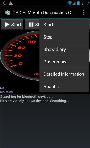 Sebuah OBD2 karena aplikasi scanner diagnostik yang menggunakan penerbangan murah bluetooth ELM327 adapter untuk menghubungkan ke bus Anda OBD2 bus.