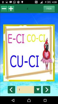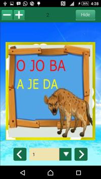 Aplikasi ini berisi cara lengkap tentang cara cepat membaca abjad mulai dari belajar mengenal huruf A sampai Z, belajar mengenal huruf vokal dan konsonan, belajar membaca gabungan huruf bokal dan konsonan, belajar mengenal dan membaca huruf yang terdiri dari 2 suku kata dan 3 suku kata