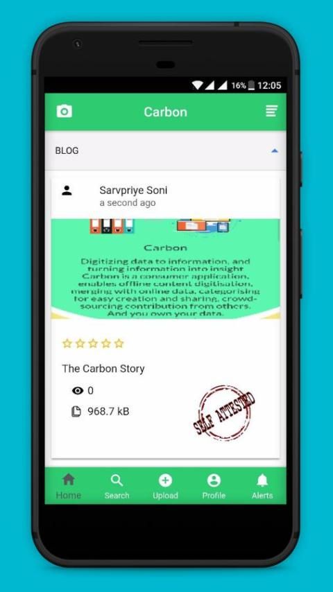 Juga, Anda dapat berbagi dokumen Anda dengan pengguna lain Carbon App dan mereka dapat menyetujui dan menilai dokumen Anda. Pengguna dapat memberikan rating dari lima ke dokumen. Ini akan lebih meningkatkan validitas dan keaslian dokumen Anda. Pengguna akan diberitahu jika dan ketika / nya dokumen nya akan disetujui atau dinilai oleh pengguna lain. Jumlah penayangan dan nilai rata-rata dari dokumen Anda dapat dilihat oleh penerbit dokumen.