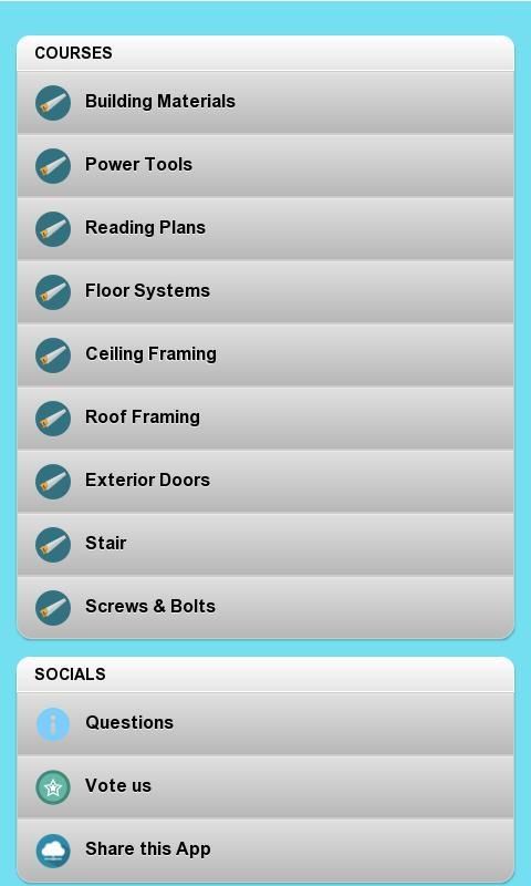 Sederhana dan menyenangkan tentu saja pertukangan sekarang dalam satu aplikasi. Anda dapat melakukan studi Anda di rumah. Anda dapat melakukan proyek-proyek pertukangan, tips dan perbaikan untuk sebagian besar pekerjaan pertukangan di sekitar rumah Anda. Memulai karir baru yang menarik. Meningkatkan pengetahuan Anda dalam pertukangan. Download aplikasi ini gratis.