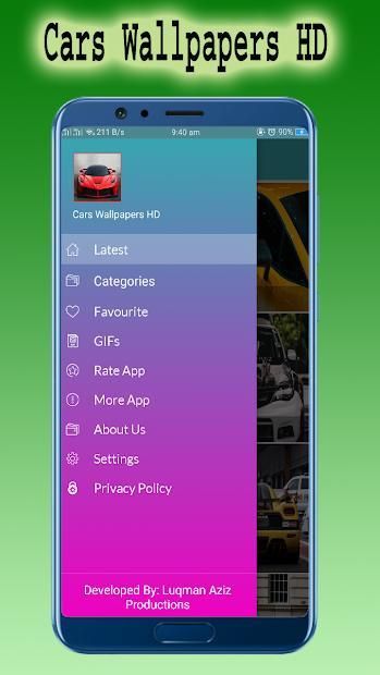 Simple and User-Friendly Cars Wallpapers HD App, allows user to download, set and share wallpapers to their Friends