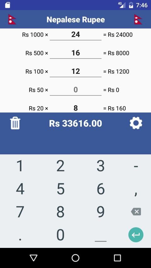 Hanya menghitung denominasi yang berbeda dan masukkan nilai-nilai di app. Aplikasi ini menyajikan sub total dan total. Nilai yang dimasukkan akan disimpan sampai Anda tab tombol reset.