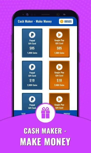Dengan Cash Maker - Make Money adalah aplikasi termudah dan supercepat untuk memberi Anda kartu hadiah, hadiah, dan kartu hadiah PayPal Cash & Google Play gratis!