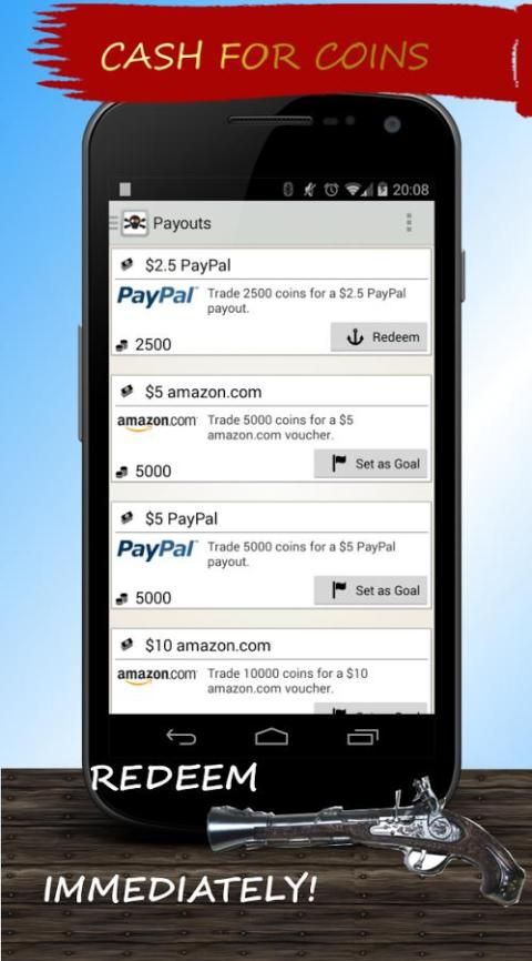 • Ketika Anda membuat setidaknya 2.500 koin, Anda dapat meminta pembayaran melalui Paypal, menerima kartu hadiah melalui surat atau memilih untuk mengisi ulang ponsel!