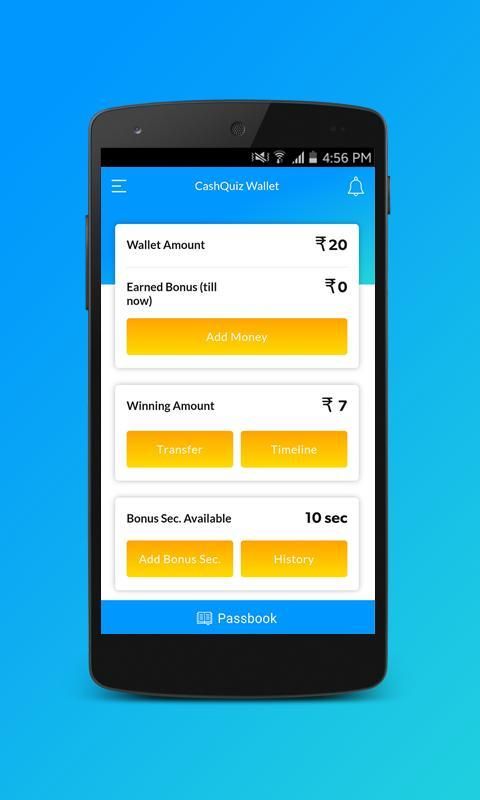 a) User can register on CashQuiz and can get Rs. 10 as bonus amount to play quizzes.