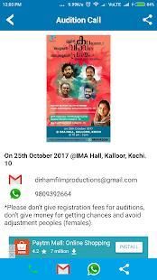 Cast Me application will help the peoples, those who are looking for a job in Film Industry. Cast Me app provides casting calls and audition notices for the job seekers with an user friendly interface. Also the candidates can directly send their Portfolio or Resumes into WhatsApp or E-mail with in this Application. Cast Me team is will collect and update the casting calls and list them in Cast Me app. More over users who wish to advertise their casting calls, can directly publish using Cast Me app. Our admin panel will approve those after their validations. Cast Me app service is completely free of cost.