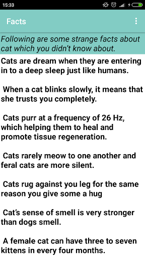 "Cat Care Guide: Ultimate Cat Care " is a unique app and from this app, you can have a basic idea about how to care your cat in the perfect manner. From this app, you can have a better idea of the basics of the caring of cats.It's better to understand the behaviors and like dislike of your pet. In this app, we are a plan to mention out some important information about the cats in general and some tips for care them in the proper way.