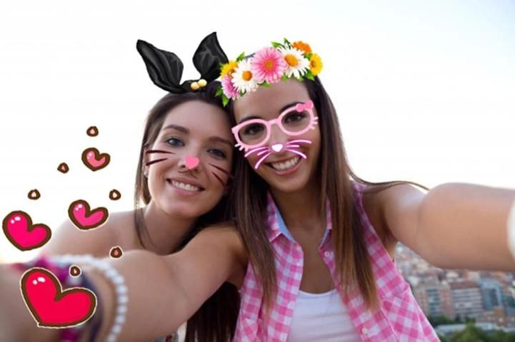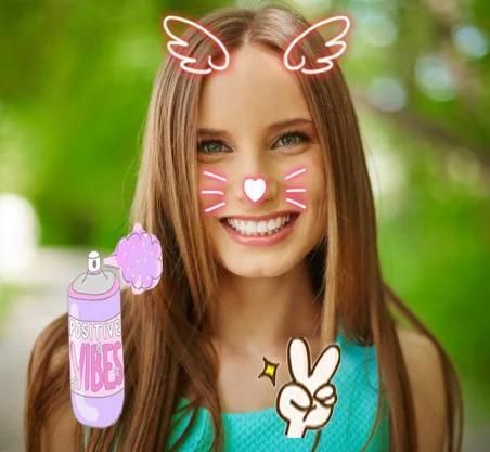 Juga termasuk Banyak filter dan stiker yang tersedia, seperti bunga mahkota, wajah kucing, gelas, emoji, snap dan banyak lagi.