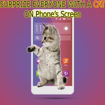 «Kucing di layar ponsel - lelucon" adalah aplikasi hiburan, yang menampilkan animasi kucing yang sangat realistis di layar ponsel Anda. Anda dapat melihat portal sosial, membaca email, mendengarkan musik, bermain game, chatting di facebook atau instagram. , Bermain Video atau surfing web, dan binatang maya masih terlihat.