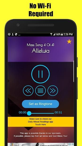 You can set easily ANY of these Catholic Mass Songs as Ringtones in your Android Device.