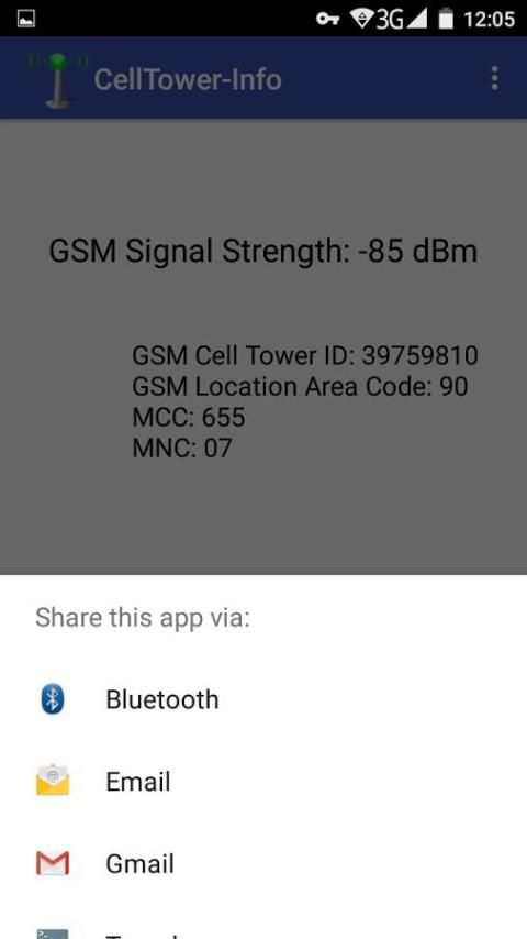 Aplikasi android ini menampilkan sel saat ini terhubung (mobile) informasi tower seperti: GSM Kekuatan Sinyal, GSM Seluler ID (CID) dan Kode Area GSM (LAC). Juga Mobile Kode Negara (PKS) dan Mobile Kode Network (MNC). Hal ini terutama digunakan untuk debugging masalah konektivitas seluler, tetapi menggunakannya dengan cara apapun yang Anda suka :).