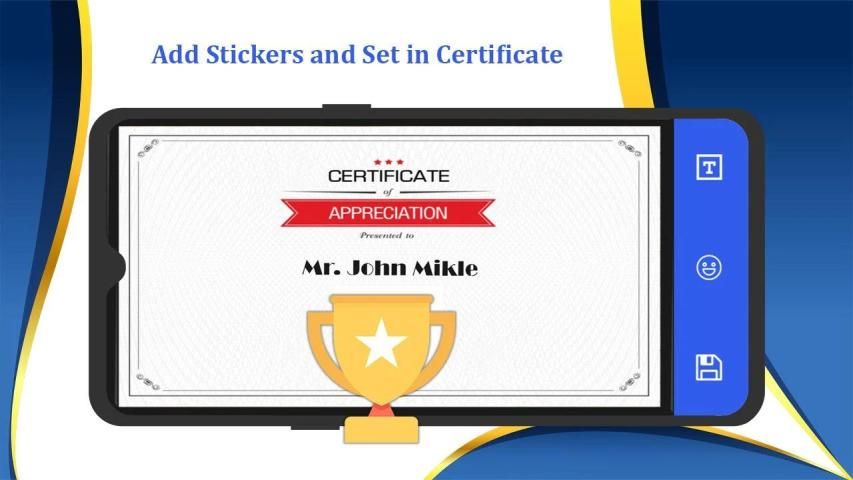 Certificate Maker application has a huge collection of the top certificates cards and messages including Appreciation messages, sincere messages and thanks messages many more...Its become very easy to generate certificates at home and make easy access to designing logo and award giving Certificates.