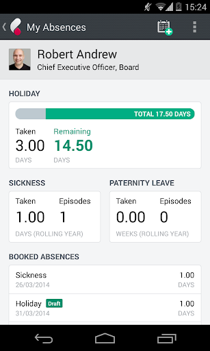 • Periksa ketidakhadiran dan saldo kerja Anda.