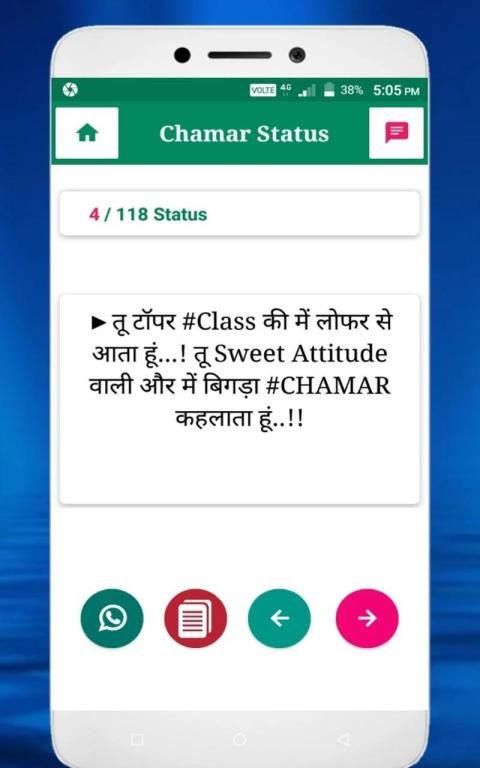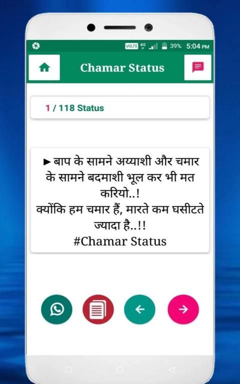 This application provides the brand new chamar attitude status and share. It also contains the Bhim army chief Chandrashekhar Image as a background.