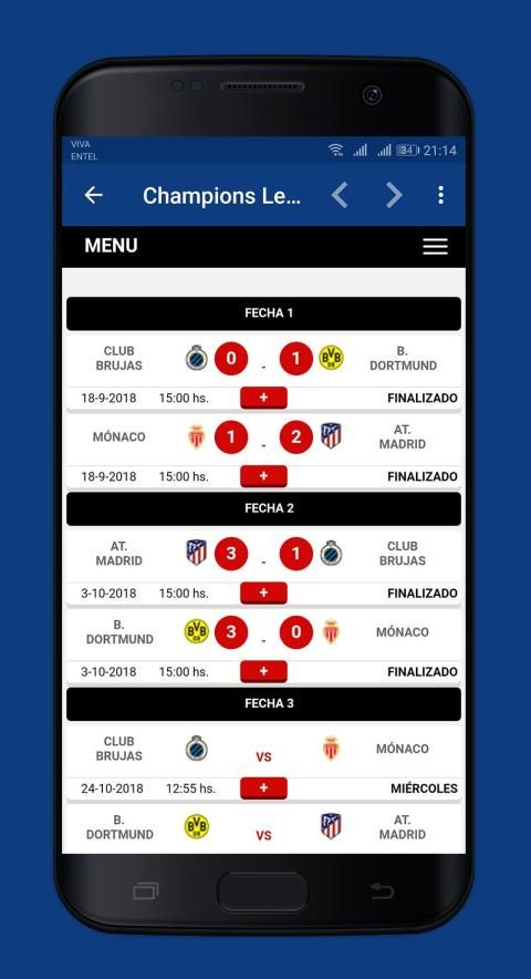 Aplikasi ini adalah yang paling lengkap dari langsung dan langsung Liga Champions, yang menampilkan data tentang tim kualifikasi, pertandingan, grup, jadwal pertandingan, kedudukan. dll.