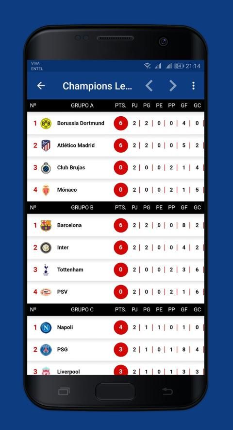 Esta aplicación es la más completa de la Champions League en vivo y en directo, que te muestra datos sobre equipos de clasificación, partidos, grupos, fixture, tabla de posiciones. etc.