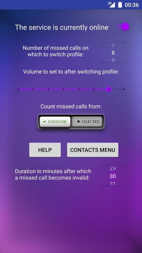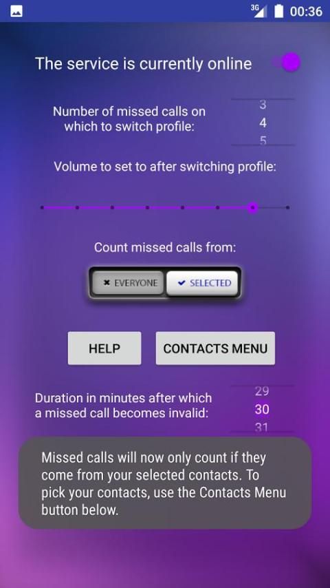 Aplikasi ini di sini untuk membantu Anda pada saat-saat ketika seseorang benar-benar perlu untuk mendapatkan dengan Anda, tapi Anda tidak melihat panggilan telepon karena Anda berada di diam atau dering. Apa aplikasi ini dilakukan adalah mengganti profil Anda dari diam atau bergetar kembali ke dering berdasarkan konfigurasi yang telah Anda tetapkan. Anda dapat menyesuaikan banyak hal seperti jumlah panggilan tak terjawab yang Anda butuhkan untuk mencapai sebelum profil switching, jangka waktu setelah panggilan tidak terjawab dianggap tidak sah, kontak yang layanan untuk mengaktifkan dan banyak lainnya.