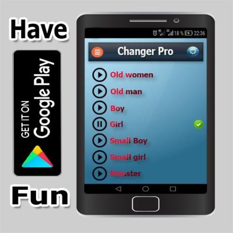 Aplikasi Anda dapat mengubah suara Anda untuk suara apapun dari Anda memilih seorang gadis, seorang pria, balita atau orang tua