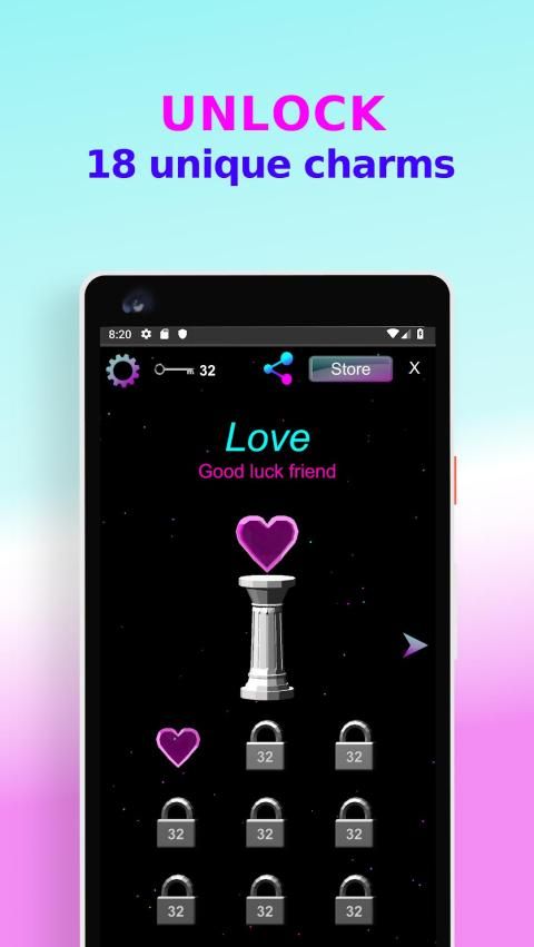 Spin bonus wheel daily to earn keys to unlock new charms for self-improvement. Share your progress with friends for more keys!