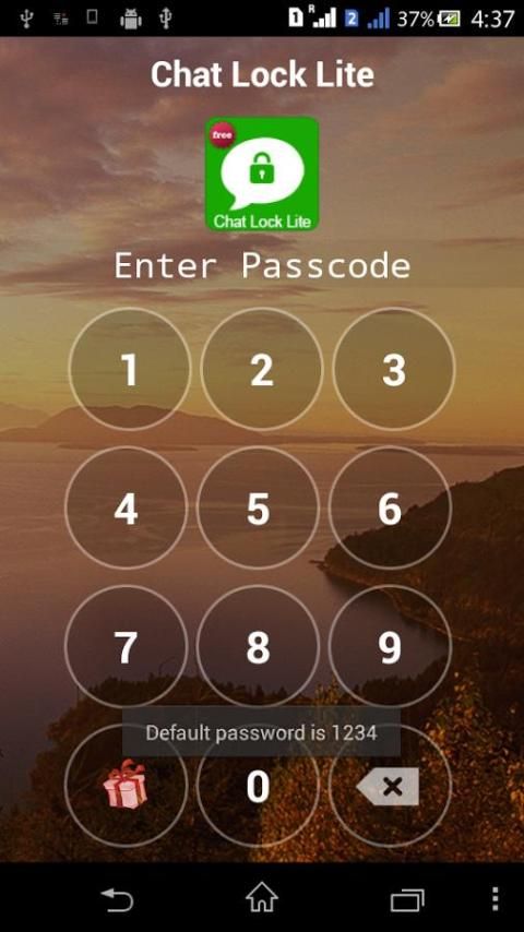 Very Light tertimbang, Efisien dan Efektif Obrolan Lock untuk melindungi pesan Anda dari WhatsApp, Kik, Skype, Snapchat, Facebook Messenger, Twitter, Hike, Line, WeChat, Hangouts bawah PIN. Default Password adalah 1234 dan Anda dapat mengubahnya nanti.