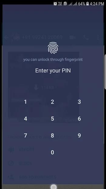 Bagian yang terbaik adalah, tidak hanya dapat mengunci obrolan, tetapi bahkan memiliki kemampuan untuk mengamankan aplikasi lengkap menggunakan PIN tunggal atau Cetak Gambar.