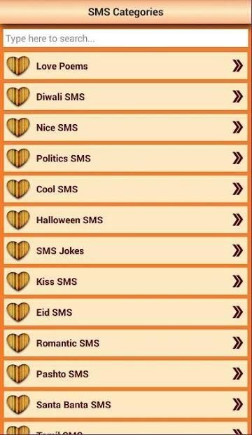 - Sekitar 50+ SMS gratis kelas koleksi jenis persahabatan, cinta tidak bahagia, romansa, lelucon konyol, ulang tahun, Shayari, keinginan pagi, SMS malam yang jujur.