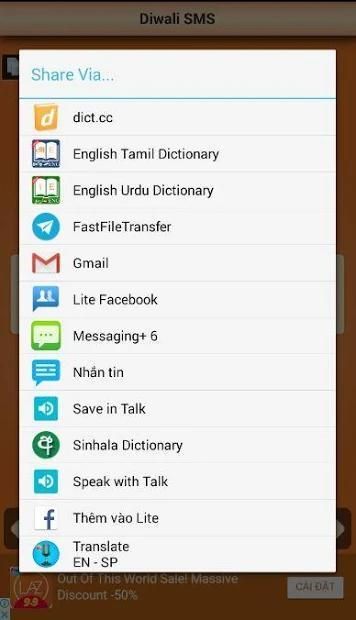 - Berisi seri SMS hari ini dari jenis gala Diwali, Raksha Bandhan, eid (Islam), dll.