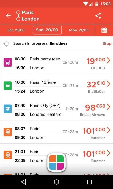 Mudah digunakan, aplikasi ini memungkinkan untuk mengurutkan hasil berdasarkan harga, waktu keberangkatan atau durasi perjalanan dan memilih moda transportasi yang ingin Anda gunakan.