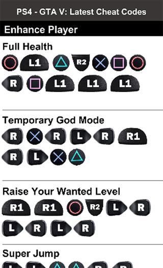 Termasuk bagian terpisah untuk PS4, PS3, Xbox One, Xbox 360 dan PC GTA V menipu, semua dalam satu aplikasi