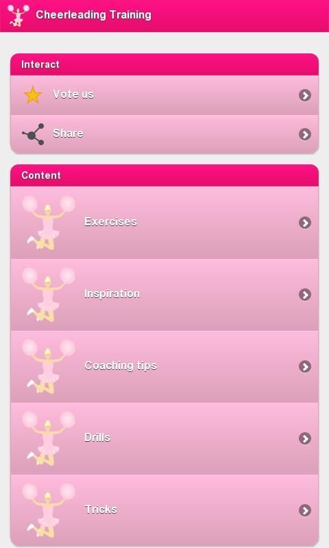 Juga Anda memiliki video sehingga Anda dapat menemukan inspirantion untuk meningkatkan keterampilan Anda dan menjadi cheedleader terbaik yang pernah! Segala sesuatu yang Anda usulkan, kau akan mendapatkannya.
