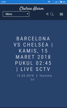 alarm chelsea, solusi untuk anda yang ingin update jadwal,hasil pertandingan, dan berita seputar chelsea. kami akan memberikan notifikasi setiap chelsea akan bertanding untuk mengingatkan anda bahwa ada pertandingan hari ini. dan akan ada cuplikan goal setelah pertandingan.