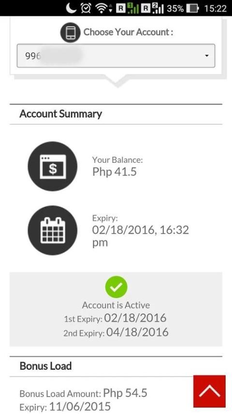 - Status account cek termasuk 1 SIM dan 2 Tanggal Berakhir, dompet utama dan Bonus keseimbangan beban, dll