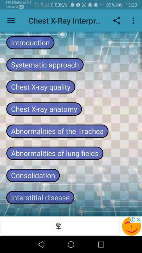 this application explain how to recognize basic radiological signs, pathology and patterns associated with common medical conditions as seen on plain PA, lateral and AP chest radiographs