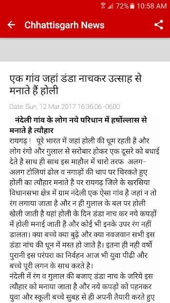Dapatkan berita terbaru dan melanggar Chhattisgarh dalam bahasa Hindi dari koran favorit Anda -deshbandhu & Saluran website. Kami memiliki hidup RSS feed datang dari situs resmi mereka. Jelajahi Chhattisgarh (Raipur, Durg, Bilaspur, Korba, Jagdalpur dan kota-kota besar Chhattisgarh) topik terjadi seperti, budaya, bisnis, politik, olahraga & lebih.