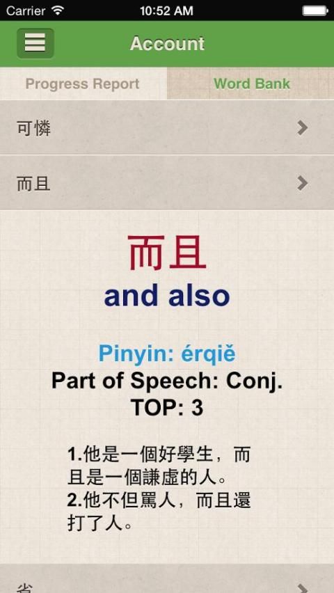 1. Klik pada kata-kata berwarna, dan kami akan menunjukkan definisi bahasa Inggris, pinyin, bagian dari pidato, kalimat, dan tingkat HSK / TOP nya.