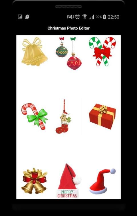 Tambahkan Item Natal dengan menekan tombol berpusat sampai Daftar dengan Natal Stuff muncul. Pilih favourit Natal Produk Anda dan tarik ke posisi yang tepat di Foto Anda. Menyimpan dan berbagi dengan teman dan keluarga pada Natal Evening.