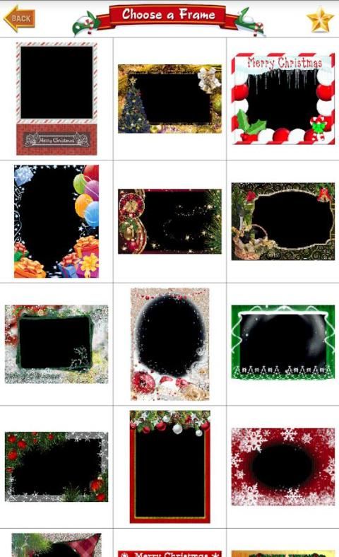☼ Pilih dari lima belas frame Natal dalam berbagai bentuk dan warna yang berbeda dan mencoba mereka semua keluar!