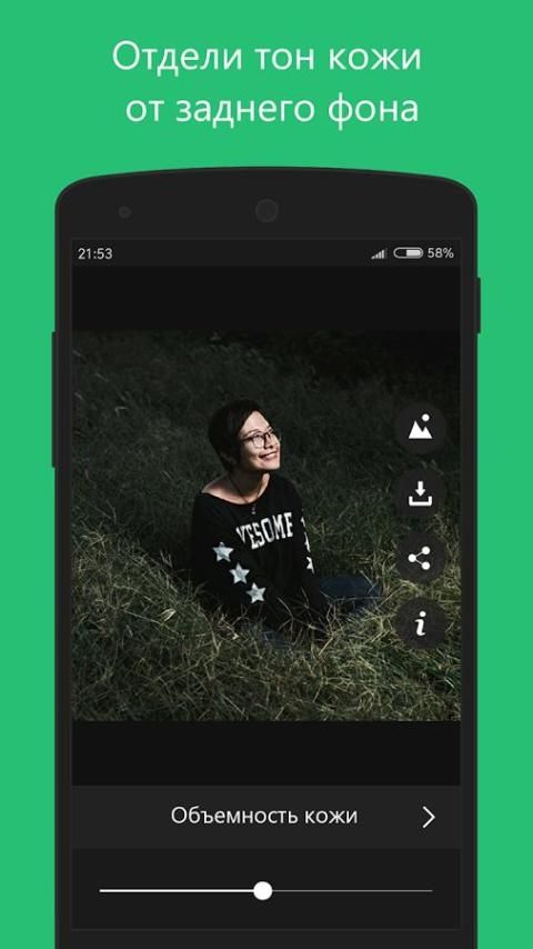 • Sebagian besar kulit - meningkatkan kontras dan kecerahan kulit, dengan fokus pada orang tersebut;