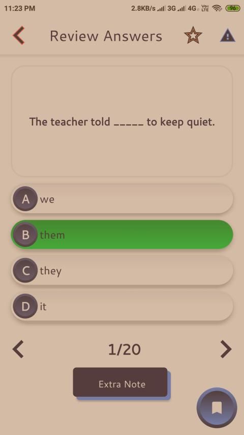 Di setiap mata pelajaran ada level kuis. Di setiap level ada 10 pertanyaan. Saat bermain kuis, pertanyaan akan ditampilkan dengan empat opsi. Pilih opsi yang menurut Anda adalah jawaban yang benar. Jika jawaban Anda benar, opsi yang Anda pilih akan disorot dengan warna hijau. Jika salah maka akan disorot dengan warna merah dan jawaban yang benar akan disorot dengan warna hijau.