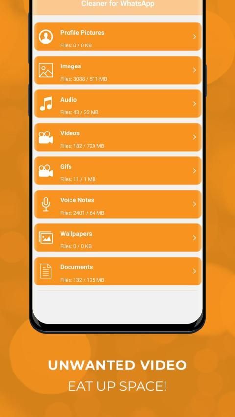 You just open Cleaner for WhatsApp and then our app will automatically identify what can be deleted. We support videos, documents, images, audio and voice files, GIFs and even wallpapers. All you have to do is to enter that section, check what items you want deleted and start the deletion process. Cleaner for WhatsApp is fast, precise and easy to use. That will make it very easy for you to enjoy the experience and just take your experience to the next level.