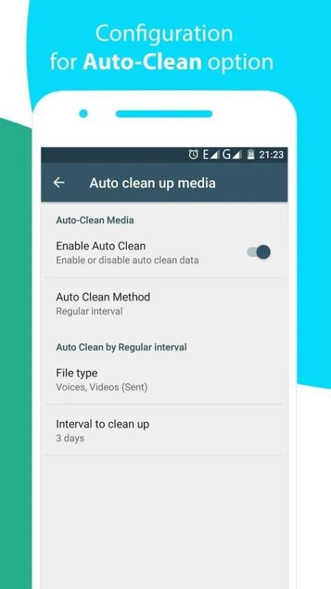 ★ Aktifkan / Nonaktifkan opsi Auto-Clean untuk membersihkan file media dengan interval reguler atau dengan batas penyimpanan.