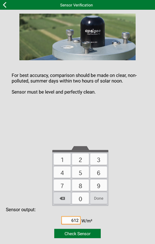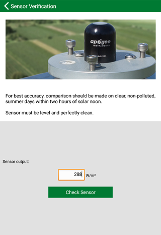 Apogee sangat mendorong pelanggan kami untuk menggunakan Clear Sky Calculator sebagai cara yang efektif untuk memonitor piranometer dan kinerja sensor kuantum dan menentukan kebutuhan. untuk Kalatibrasi Sensor. Jika sensor secara konsisten berbeda dari kalkulator langit bening lebih dari beberapa persen, silakan hubungi kami tentang Kalatibrasi.
