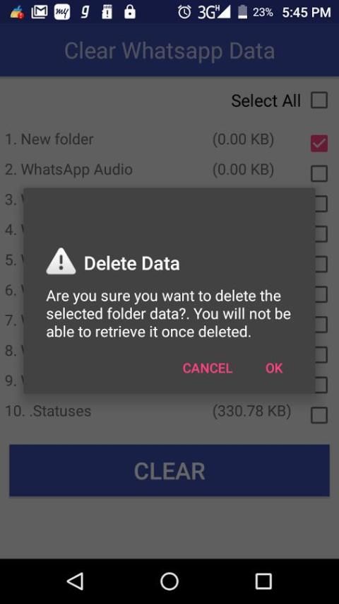 Pengguna dapat membersihkan data Whatsapp langsung dengan aplikasi tertentu dan mendapatkan ruang bebas. Untuk menghapus data pengguna Whatsapp hanya perlu memilih folder seperti Whatsapp Audio, Animated Gifs, Voice Notes, gambar, foto profil, status, Dokumen dll