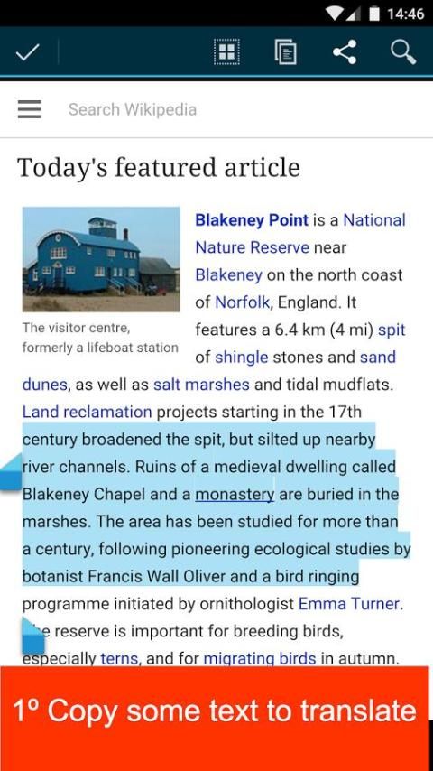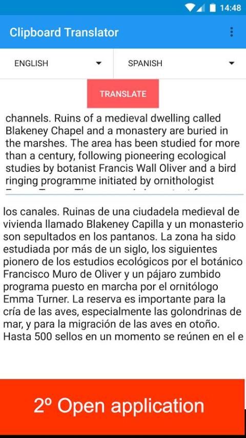 Aplikasi ini secara otomatis menerjemahkan clipboard. Pertama menyalin beberapa teks di web kemudian membuka aplikasi.